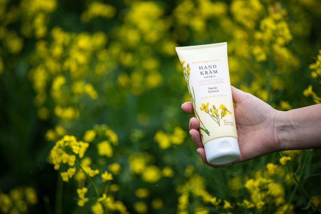 - Rapsodine Handkräm – vår ekologiska handkräm med ljuvlig doft av vit blomma skyddar, mjukgör och förebygger problem med torr hud. Handkrämen innehåller både svensk ekologisk rapsolja och karbamid som återfuktar huden på djupet och ger långvarig verkan.