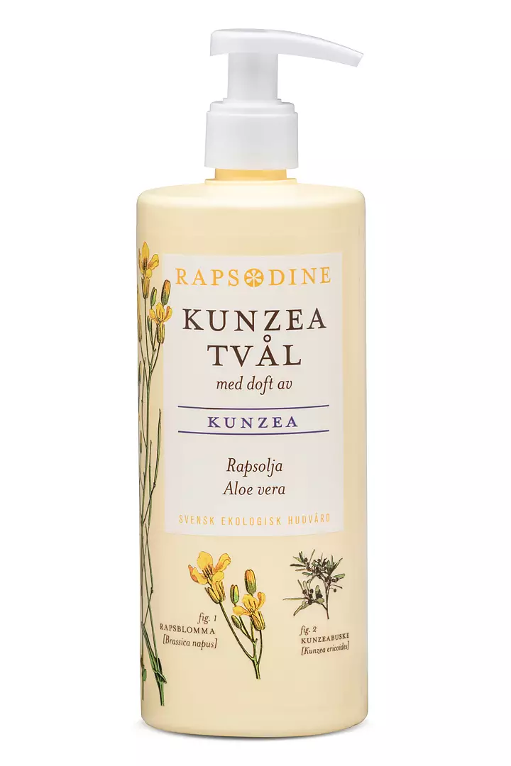 - Rapsodine Kunzeatvål – en mild och fuktighetsbevarande tvål som innehåller den eteriska och välgörande oljan från Kunzeabusken. Kunzea passar extra bra för dig med torr, känslig, hård eller problematisk hud. Den ekologiska tvålen innehåller också en hög andel rapsolja som också vårdar, mjukgör och återfuktar huden.
